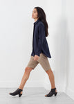 The perfect blouse is a coveted thing. The German brand has devoted itself to harnessing the mastery and construction of this timeless piece. The graceful Lima adds stunning embellishment to the springtime closet. Essentially frameless, this top incarnates the feminine mystique. Hidden front button placket. Lareida. Color Navy. 100% Silk. Made in Portugal. Ashley is wearing a Size 34.
